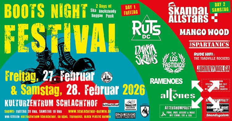 Seid dabei, wenn No Sports ihre größten Hits und Fan-Lieblinge wie "Stay Rude Stay Rebel", "King Kong", "4 on the Floor" und viele mehr zum Besten geben und für eine Nacht voller Tanz und guter Laune sorgen. Der einzigartige Sound und die charismatische Bühnenpräsenz von No Sports sind unverkennbar. Die Energie der Band ist ansteckend, und ihre Live-Auftritte sind immer ein unvergessliches Erlebnis. No Sports ist seit über 35 Jahren in der Musikszene aktiv und hat sich einen Namen als eine der besten SKA-Bands in Europa gemacht. Sie sind auf einigen der größten Festivals der Welt aufgetreten, und jetzt kommen sie in deine Stadt! Verpassen Sie nicht Ihre Chance, No Sports live zu erleben. Die Tickets sind immer begrenzt, also sichern Sie sich jetzt Ihre und machen Sie sich bereit, die Nacht zu den ansteckenden Klängen dieser legendären Band durchzutanzen!