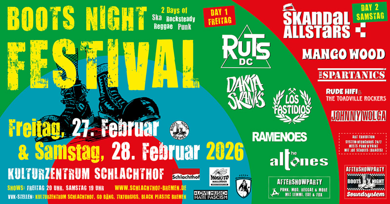 Seid dabei, wenn No Sports ihre größten Hits und Fan-Lieblinge wie "Stay Rude Stay Rebel", "King Kong", "4 on the Floor" und viele mehr zum Besten geben und für eine Nacht voller Tanz und guter Laune sorgen. Der einzigartige Sound und die charismatische Bühnenpräsenz von No Sports sind unverkennbar. Die Energie der Band ist ansteckend, und ihre Live-Auftritte sind immer ein unvergessliches Erlebnis. No Sports ist seit über 35 Jahren in der Musikszene aktiv und hat sich einen Namen als eine der besten SKA-Bands in Europa gemacht. Sie sind auf einigen der größten Festivals der Welt aufgetreten, und jetzt kommen sie in deine Stadt! Verpassen Sie nicht Ihre Chance, No Sports live zu erleben. Die Tickets sind immer begrenzt, also sichern Sie sich jetzt Ihre und machen Sie sich bereit, die Nacht zu den ansteckenden Klängen dieser legendären Band durchzutanzen!